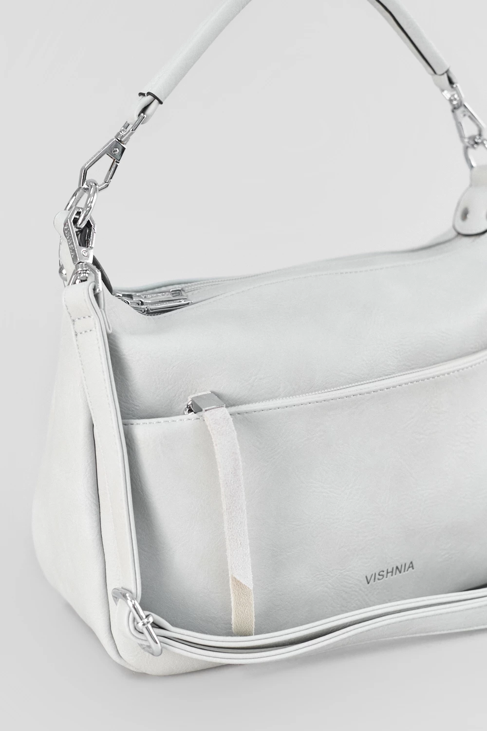 Сумка женская, через плечо светло-серого цвета из экокожи. Универсальный оттенок легко сочетается с любой одеждой - от повседневных джинсов до элегантного образа. Удобный регулируемый ремень позволяет носить её на плече или across the body. Вместительное основное отделение с карманом для мелочей поместит телефон, кошелёк, ключи и косметику. Экокожа приятна на ощупь и легко чистится. Идеальный аксессуар для города, работы и прогулок.● текстильный подклад