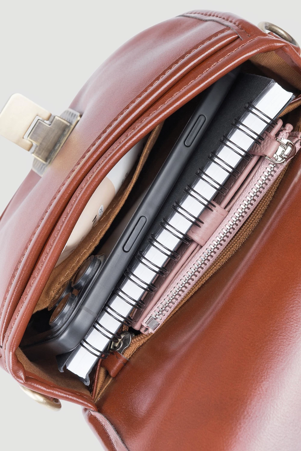 Коричневая женская сумка сэдл из фактурной натуральной кожи. Комплектуется двумя съемными ремешками: текстильным и кожаным, позволяя носить сумку как на плече, так и на руке. Металлическая цепочка дополнена кожаной вставкой в плечевой зоне для дополнительной комфортности. Закрывается поворотным металлическим замком. Внутреннее отделение вмещает телефон, бумажник и косметику.● текстильный подклад
