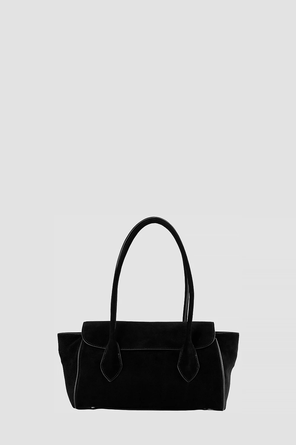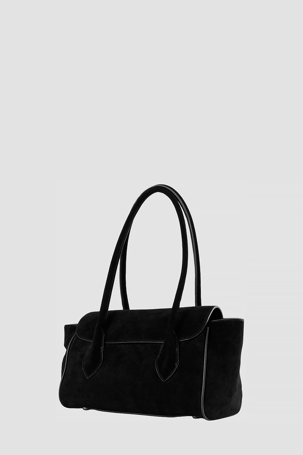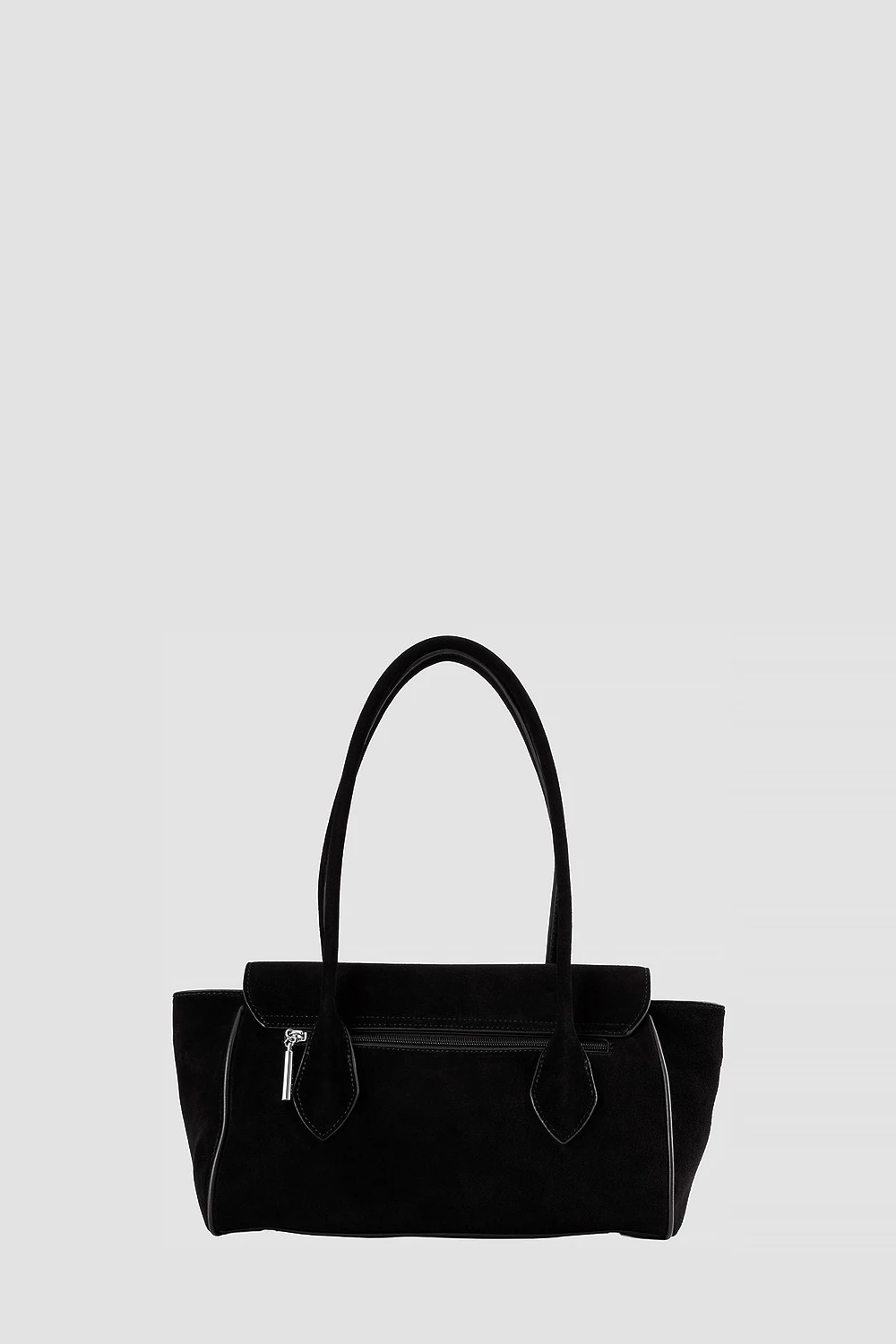 Строгая чёрная сумка-сэтчел выполнена из комбинации натуральной кожи и велюра.Просторный внутренний отсек разделён на три части: два открытых кармана и один на молнии для хранения вещей. Универсальная классика подходит как для повседневного использования, так и для официальных мероприятий.