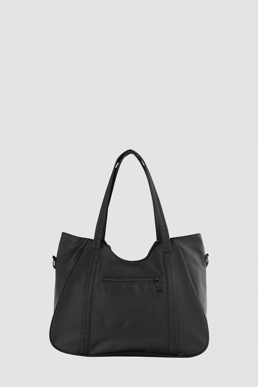 Женская текстильная сумка черного цвета. Одно основное отделение на молнии, дополнительно два закрытых и два открытых внутренних кармана. Наружный карман для мелочей. Комплектуется съемным текстильным ремнём.● текстильный подклад