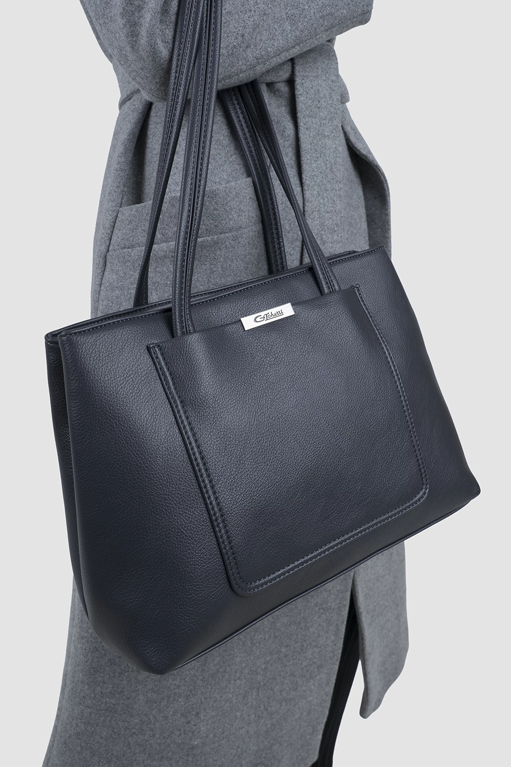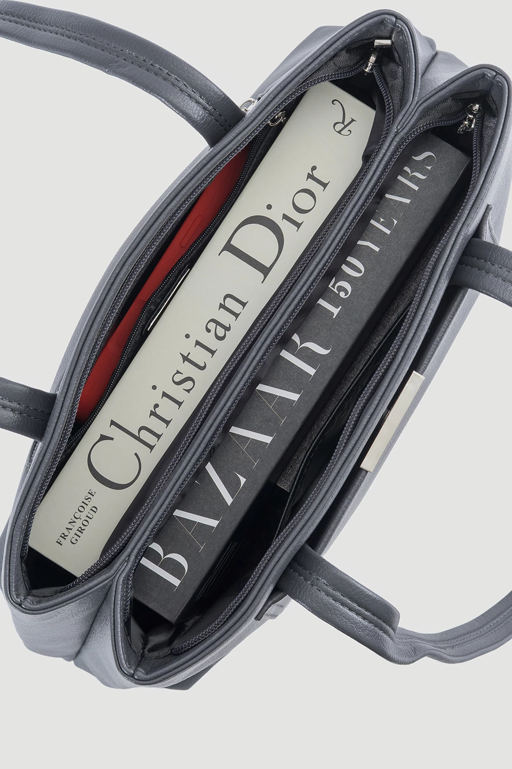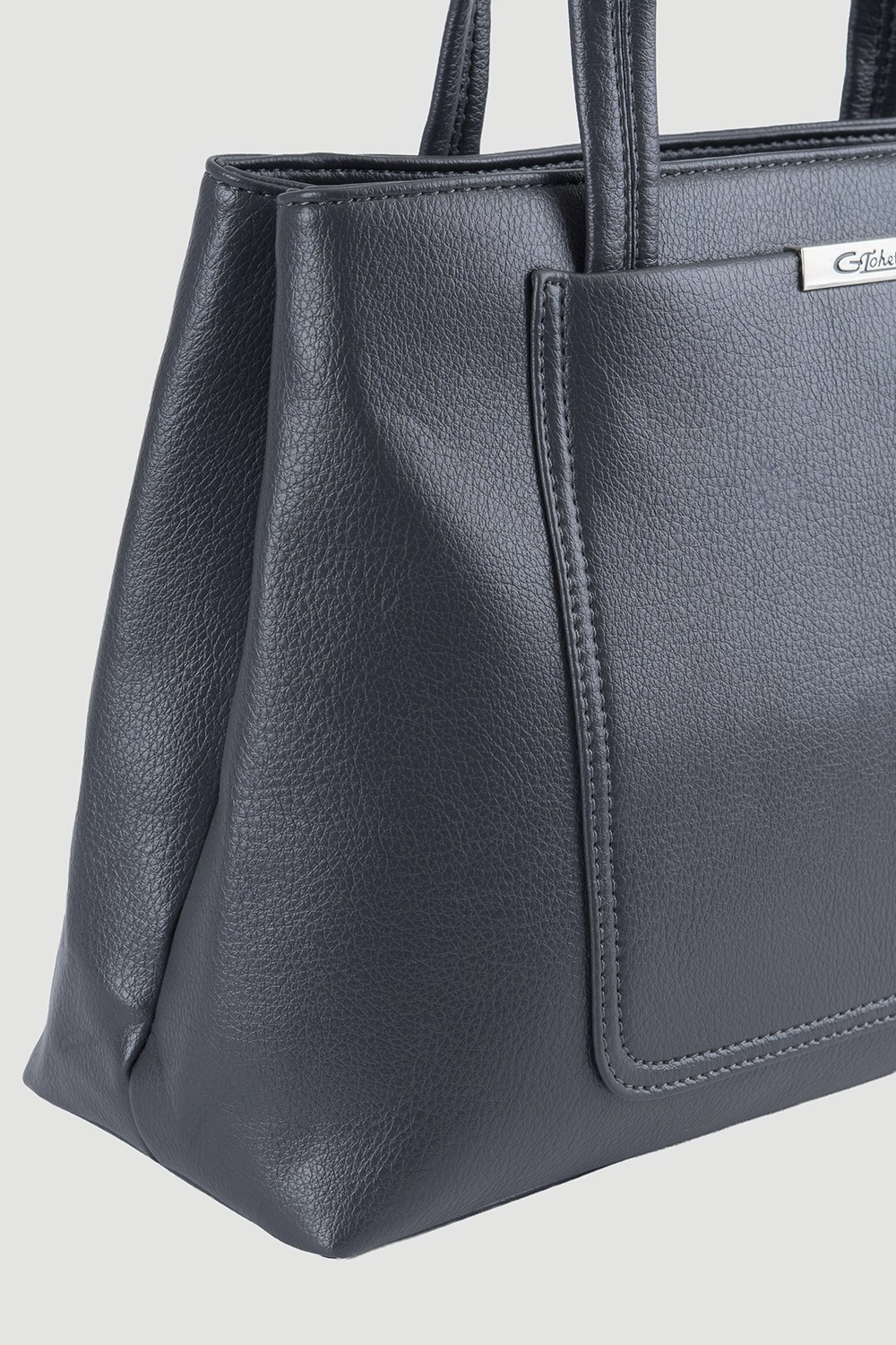 Серая сумка-тоут с просторным интерьером: два отделения, внутренний карман на молнии и один открытый карман. Для мелочи предусмотрен наружный карман на молнии сзади. Стильный аксессуар, подходящий для повседневного использования.● внешний карман на замке для мелочей