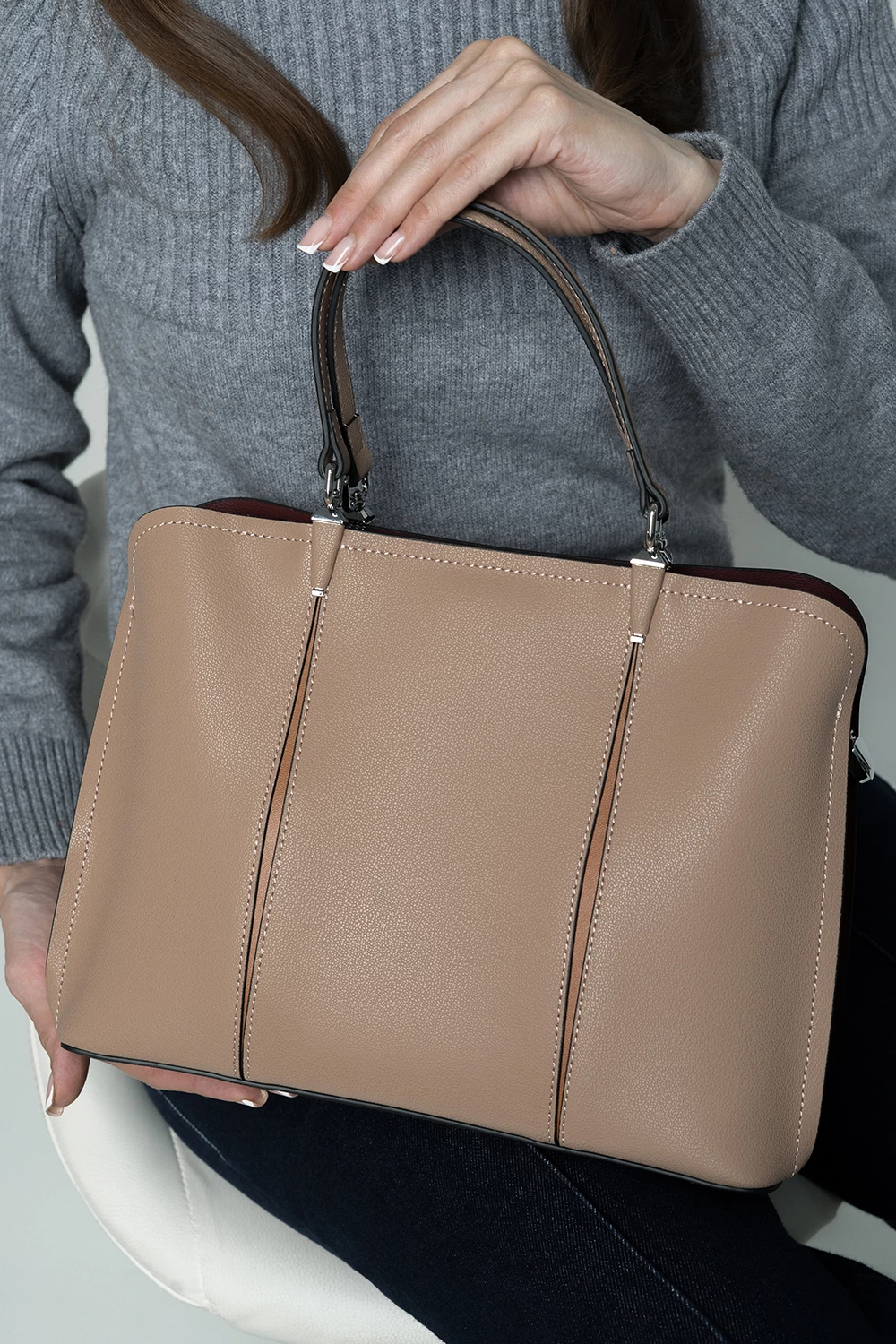Женская сумка бежевого цвета, сочетает в себе простоту и стиль без излишеств. Жесткий корпус прекрасно выдерживает форму, а ручки удобно размещаются в руке. Несомненным достоинством является один основной отдел, и два дополнительных для книг, записных книжек, небольших папок, которые должны быть всегда под рукой.● жесткий каркас